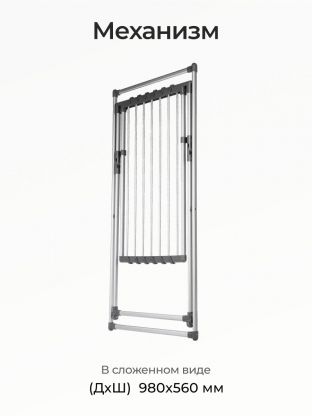 Сушилка для белья напольная, полотно 9 м, 116x63.5x108.5 см, складная, 15 кг, серая, 126208C