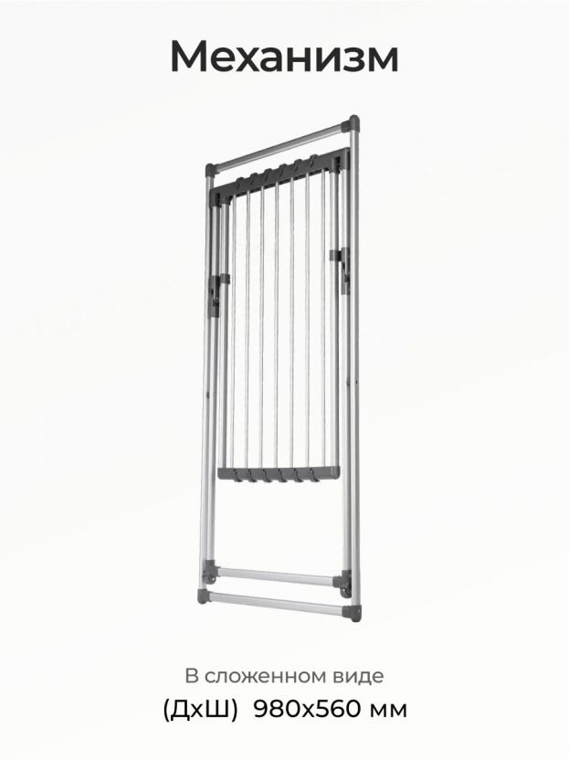 Эта модель подходит для небольших пространств: размеры 116x63.5x108.5 см, складная конструкция, легко хранить за дверью или под кроватью. Колесики позволяют быстро перемещать сушилку.