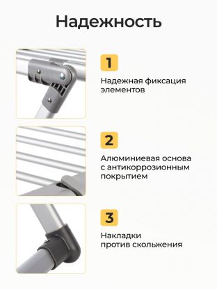 Как использовать напольную сушилку для белья? Просто разложите конструкцию, разместите вещи, и сушилка выдержит до 15 кг — это больше, чем у большинства аналогов. Если вы сомневаетесь, подходит ли для тяжелых вещей или больших простыней, обратите внимание на прочное алюминиевое основание и усиленные перекладины. В отличие от моделей с механизмом «гармошка», эта сушилка надежнее и проще в эксплуатации, особенно для семей и тех, кто часто переезжает.