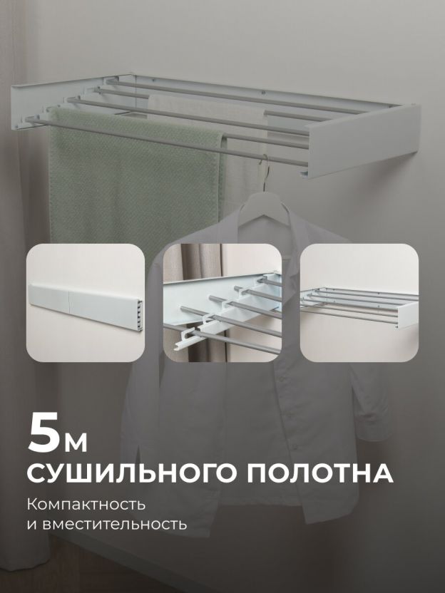 • Оптимальный размер: длина 100 см и 5 прочных прутьев обеспечивают сушку большого объёма белья без провисания