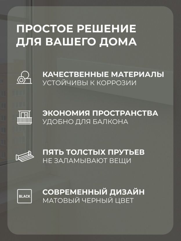 Прутья выполнены из прочного металла с защитным покрытием, устойчивым к влаге и коррозии, что важно для эксплуатации на балконе и в ванной.