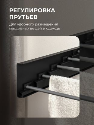 Сушилка для белья настенная, 100 см, 5 прутьев, черная, A340106