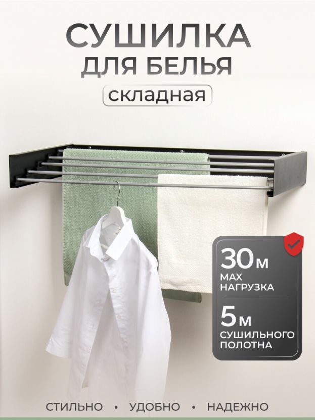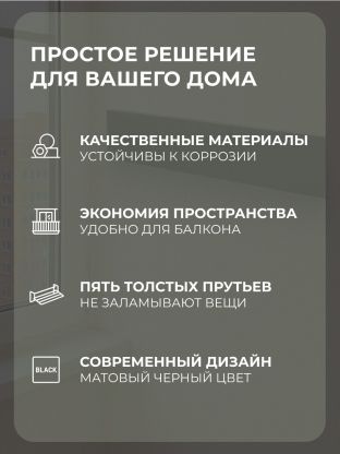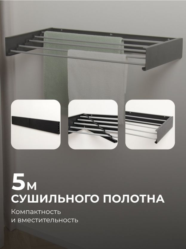 Настенная сушилка для белья 100 см, 5 прутьев, черная — компактное решение для балкона и дома: экономия пространства и быстрая сушка без лишних хлопот.