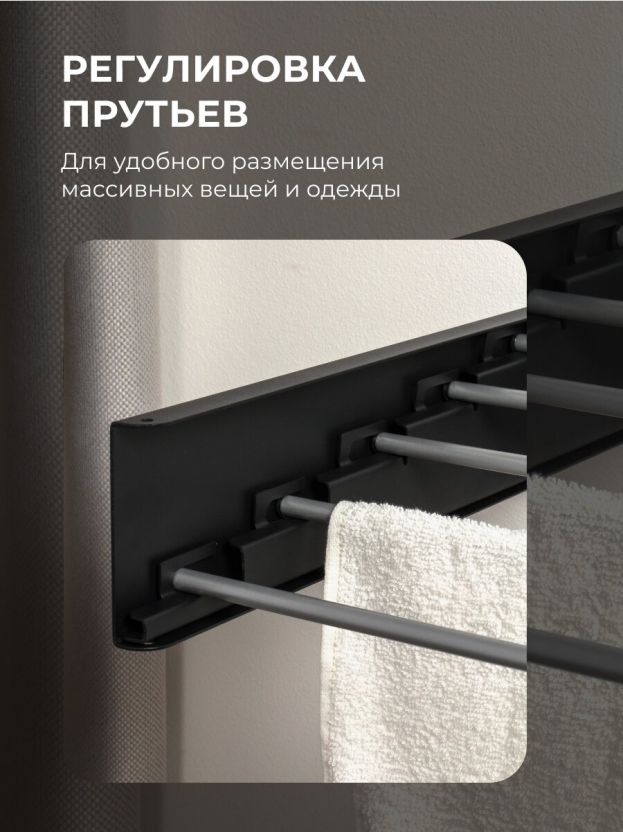 Сушилка для белья настенная, 100 см, 5 прутьев, черная, A340106