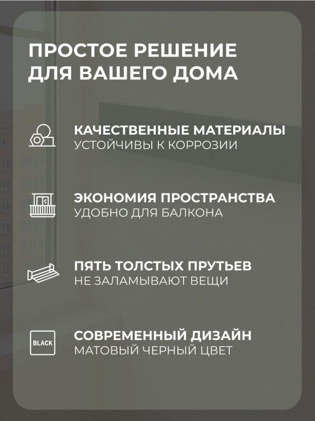 Лаконичный дизайн и универсальный черный цвет — легко впишется в любой современный интерьер балкона или ванной