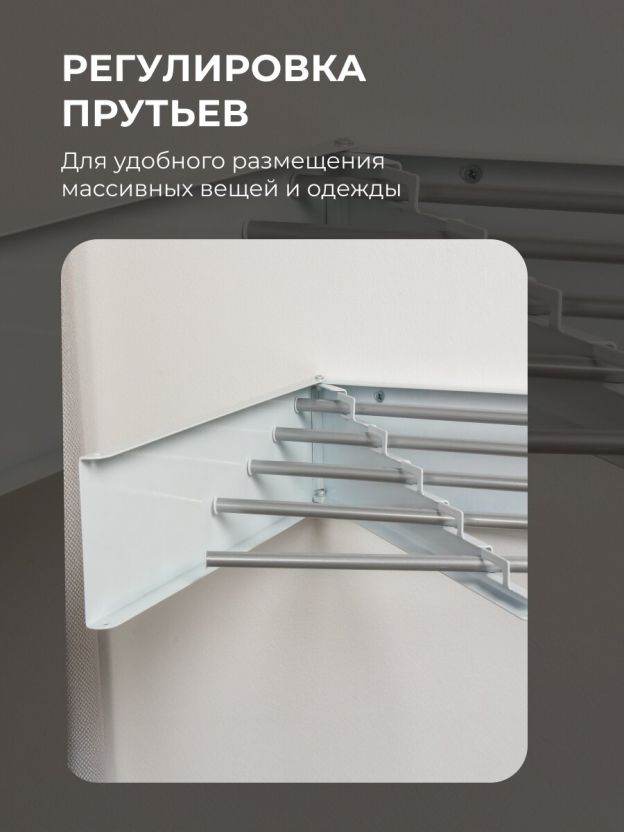 Компактные размеры и настенное крепление позволяют использовать пространство максимально эффективно. Бельё не мешает проходу, быстро сохнет благодаря хорошей вентиляции, а сама сушилка не занимает место на полу.