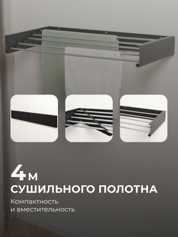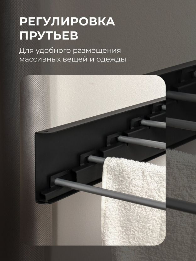 Сушилка для белья настенная, 80 см, 5 прутьев, черная, A340105