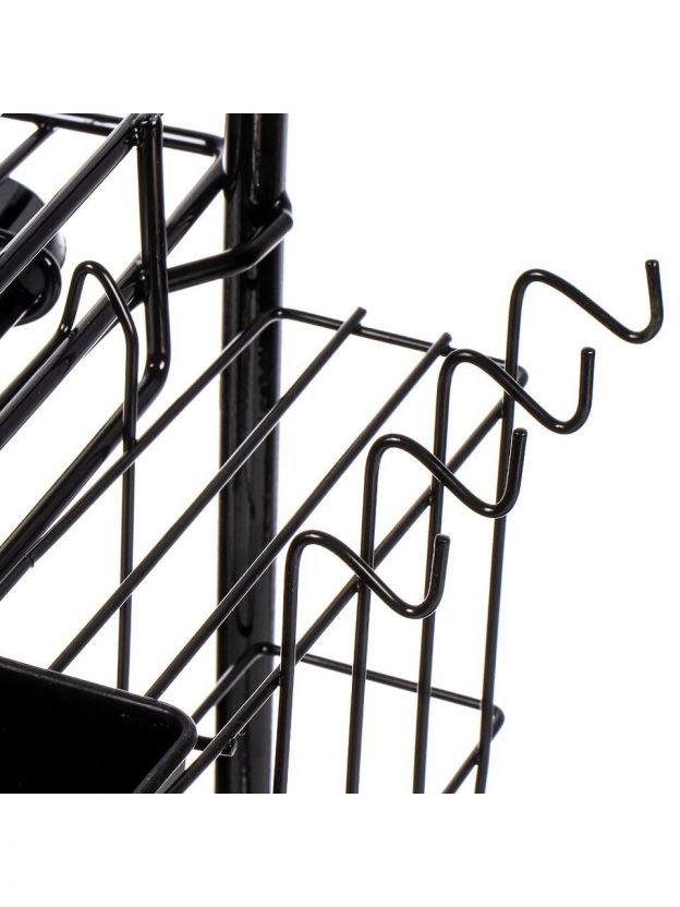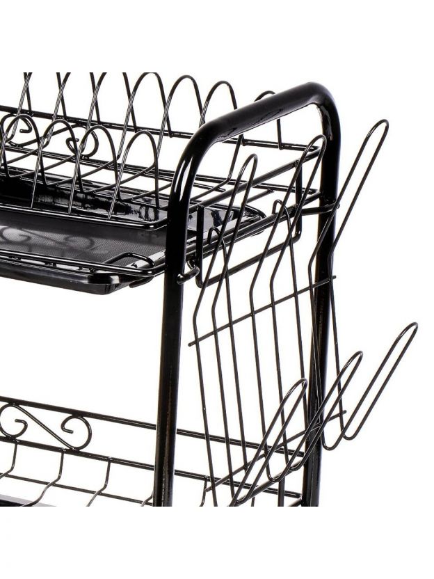 Использование сушилки для посуды помогает организовать рабочее пространство, уменьшить время на уборку и предотвратить появление разводов от воды. Черный цвет изделия прекрасно сочетается с бытовой техникой и аксессуарами, создавая гармоничную атмосферу на кухне. Благодаря надежному металлическому корпусу, аксессуар выдерживает значительные нагрузки и сохраняет первоначальный вид продолжительное время.