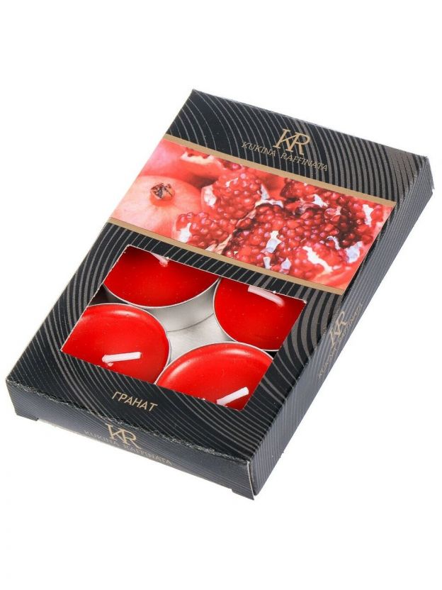 Ароматические свечи Kukina Raffinata «Гранат», 6 шт: уют, стиль и насыщенный аромат для дома и подарка. До 3,5 часов горения — выгодное решение для атмосферы.
