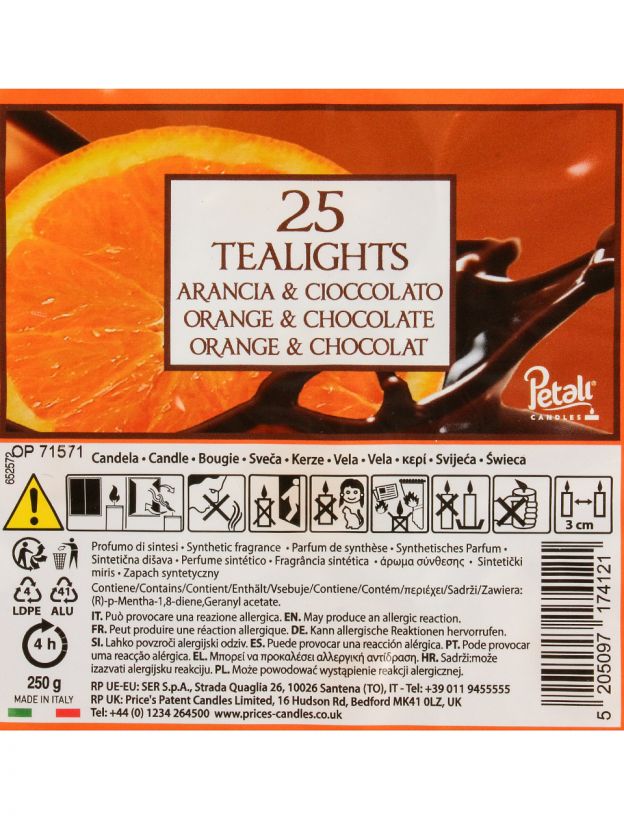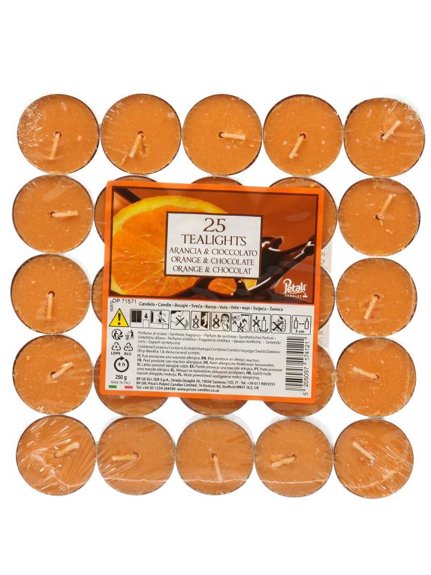 Свеча ароматизированная, 2х4 см, чайная, 25 шт, SER S.P.A, Апельсин и Шоколад, 021939DSE