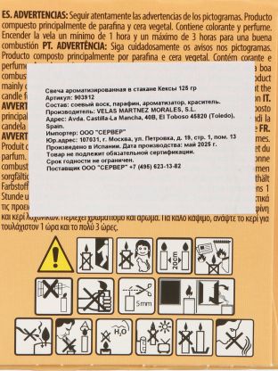 Среднее время горения — до 20 часов, благодаря плотному воску и оптимальному размеру стакана.