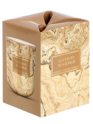 Свеча ароматизированная Bartek Candles «Мрамор Золотой и Антико» — стильный подарок и уют для дома: 150 г, хлопковый фитиль, подарочная упаковка, премиум-дизайн.