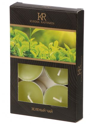 Свеча чайная ароматическая, 1.2х3.8 см, круглая, 6 шт, Kukina Raffinata, Зеленый чай