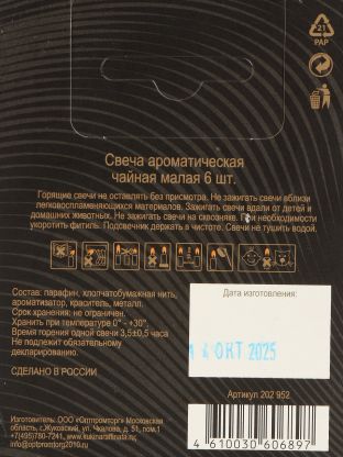 Закажите набор чайных свечей с зелёным чаем сейчас — получите быструю доставку, выгодную цену и гарантию свежести. Оцените атмосферу уюта и спокойствия в каждом помещении.