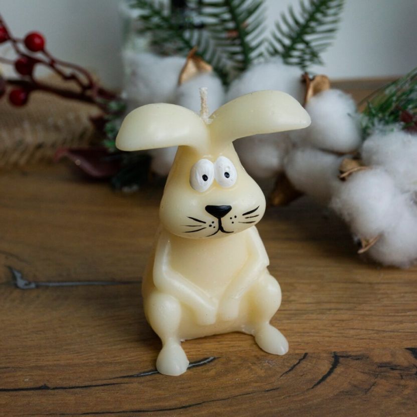 Свеча декоративная Evis "Братец Кролик малый" 11х6.5 см в айвори — изысканный акцент для уюта в доме, оригинальный подарок, безопасный декор без запаха.