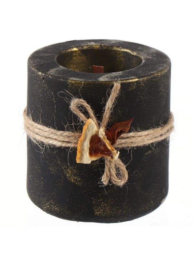 Свеча декоративная Evis Коломбо — стильный подарок и уют в интерьере: черный гипсовый стакан, деревянный фитиль, размеры 8x7,3 см, подходит для праздников и дома.