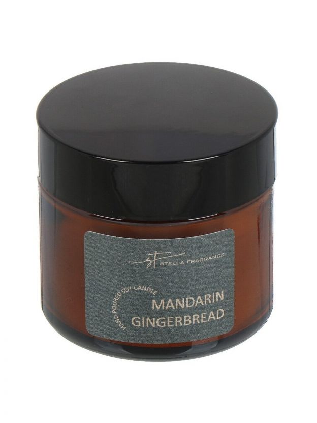 Ароматическая свеча в стакане Stella Fragrance St Mandarin Gingerbread 50 г: уютный новогодний аромат для дома, подарок, до 15 часов горения, безопасный соевый воск.