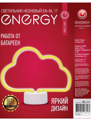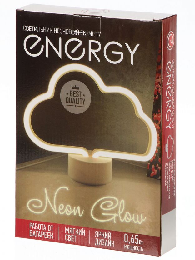 Неоновый настольный светильник Energy EN-NL 17 "Облако" — это удачное решение для тех, кто ищет стильный ночник с мягким жёлтым светом. Благодаря питанию от батареек его можно легко разместить в любой комнате, взять на дачу или использовать как атмосферный декор на вечеринке. Пластиковый корпус безопасен для детей, а высота 20 см оптимальна для размещения на тумбочке или полке.