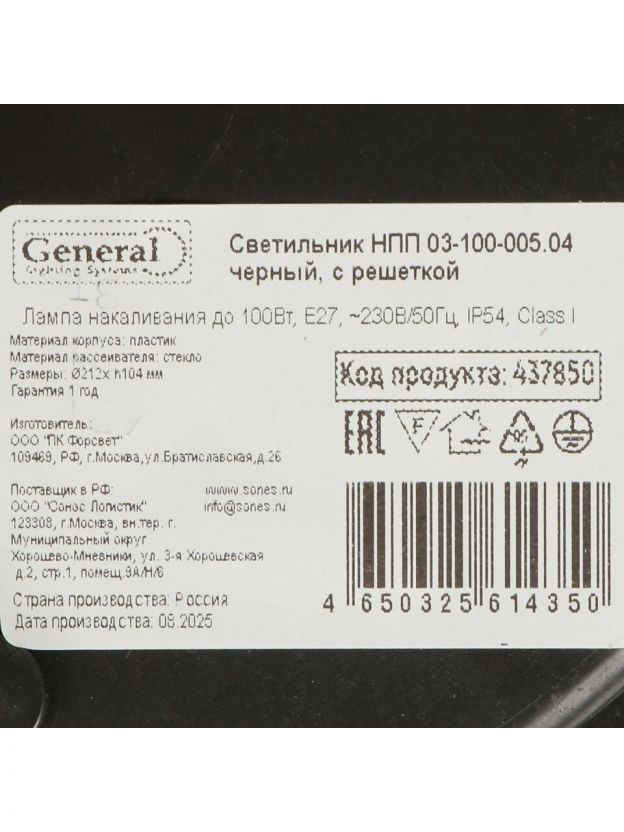Оформите заказ на светильник General НПП 03-100-005.04 с решеткой — получите надежное освещение с гарантией 12 месяцев и быстрой доставкой по России.