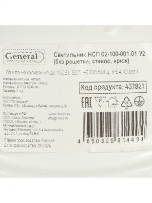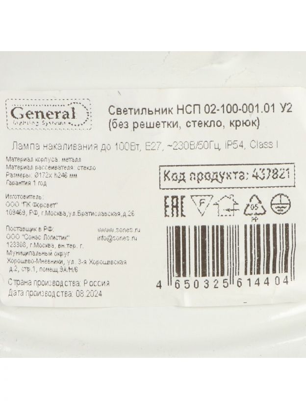 Светильник General НСП 02-100-001.01 IP54 — надёжное решение для освещения производственных и бытовых помещений: влагозащита, прочное стекло, выгодная цена.
