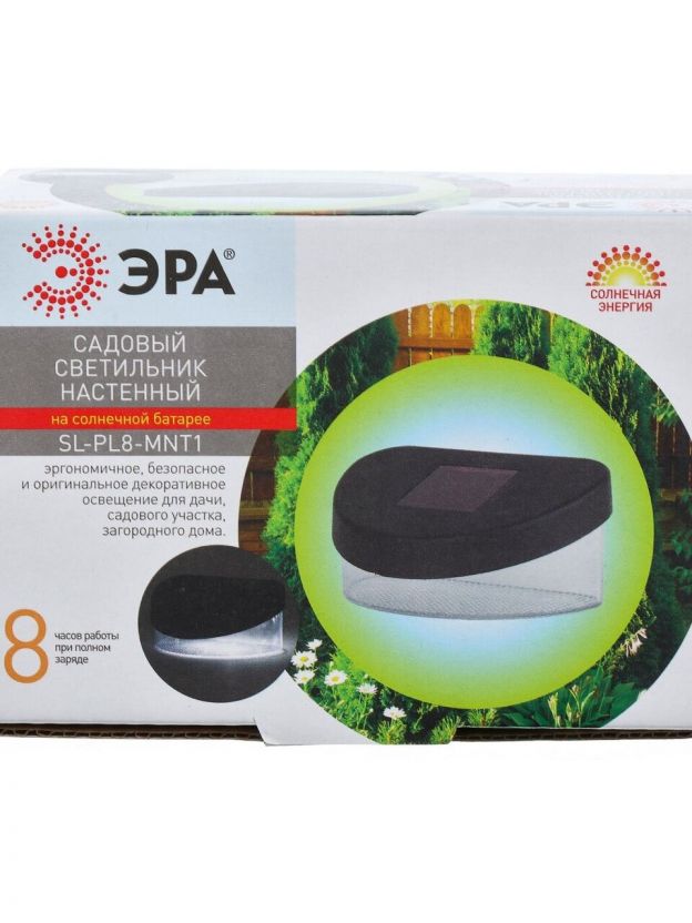Светильник Эра, SL-PL8-MNT1, на солнечной батарее, грунтовый, пластик, 5.5 см, садовый, черный