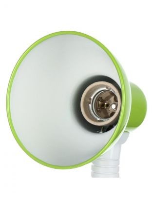 Светильник оснащен цоколем типа E27, что позволяет использовать лампочки мощностью до 40 Вт, создавая яркий и приятный свет. Зеленый абажур добавляет свежести и яркости, а белая арматура подчеркивает его современный дизайн. Этот светильник идеально подходит для детской комнаты благодаря своей гибкой конструкции и возможности регулировки высоты, что делает его удобным для использования в различных ситуациях.