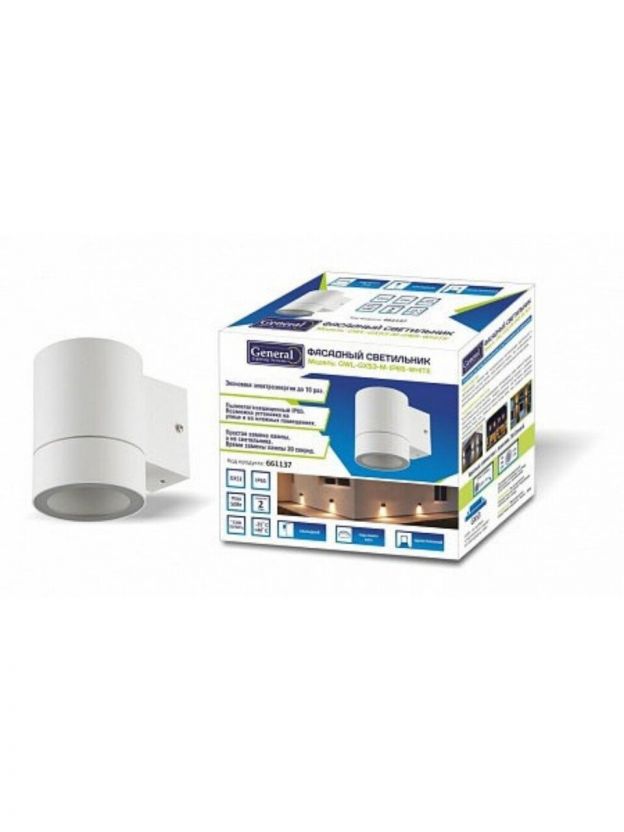 Светильник фасадный General Lighting Systems, GWL-GX53-M-IP65, 25 Вт, GX53, на 1 лампочку, IP65, 9х11.6 см, 1 лампа, IP65, белый, 661137