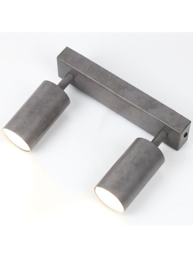 Два патрона GU10 обеспечивают равномерное распределение света, а общая мощность 50 Вт позволяет добиться оптимального уровня освещённости. Светильник выполнен из прочного материала — бетон, что гарантирует долговечность и устойчивость к механическим воздействиям. Класс защиты IP20 делает модель подходящей для использования в сухих помещениях: гостиная, спальня, коридор, кухня, кабинет или рабочая зона. Отсутствие бокового рассеивателя обеспечивает направленный поток света, что особенно актуально для акцентирования определённых зон интерьера или выделения декоративных элементов.