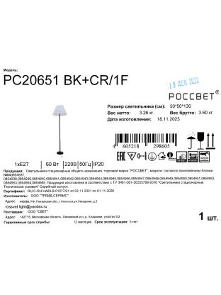 Выбирая торшер РС20651 BK+CR/1F, вы получаете не только функциональный светильник, но и элемент декора, который подчеркнёт ваш вкус. Оформите заказ сейчас и воспользуйтесь выгодными условиями доставки — убедитесь в качестве и удобстве использования лично.