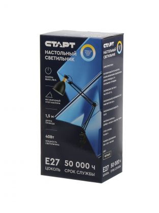 Светильник настольный 40 Вт, черный, Старт, CT903 -12, 1407 не только освещает рабочее место, но и создает уютную атмосферу, способствующую продуктивной работе. Благодаря возможности регулировки высоты, светильник обеспечивает оптимальное освещение, что снижает утомляемость глаз и повышает концентрацию. Простое крепление на струбцине позволяет легко установить светильник на любом столе, а жесткая конструкция гарантирует его стабильность и долговечность.