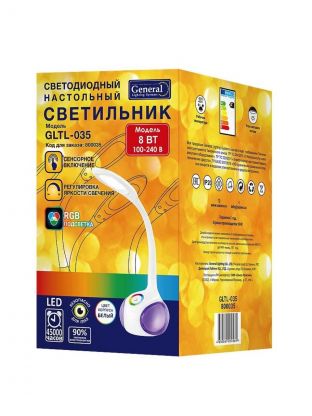 Светильник настольный 490 Лм, сенсорное включене,3 уровня яркости,нейтральный белый свет, 8 Вт, белый, абажур белый, General Lighting Systems, GLTL-035, 800035