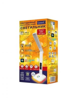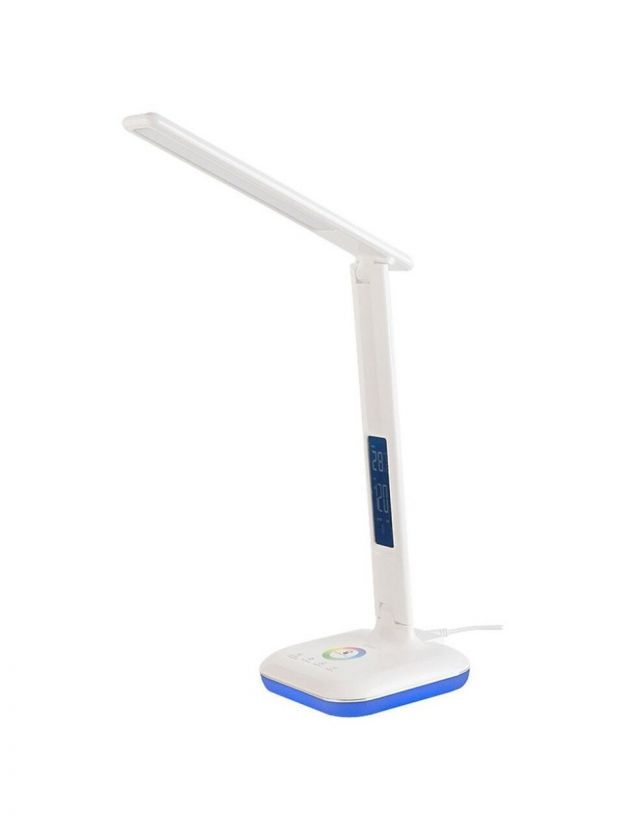 Светильник настольный 520 Лм, дисплей с часами, сенсорное включение, 3 цвета свечения, 8 Вт, белый, абажур белый, General Lighting Systems, 800152
