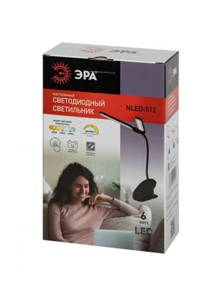 Светильник настольный 6 Вт, аккумуляторный, черный, Эра, NLED-512-6W-BK, Б0057208, на прищепке