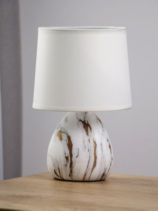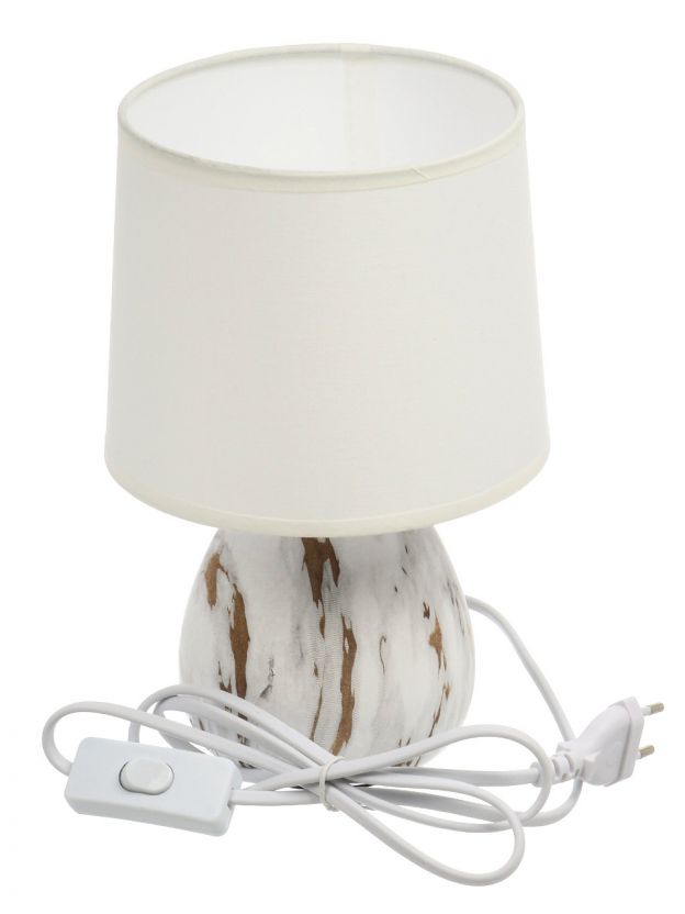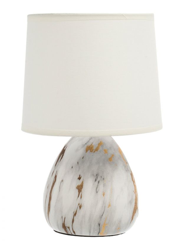 • Компактность и практичность: высота 25,5 см, текстильный абажур, долговечная керамическая основа.