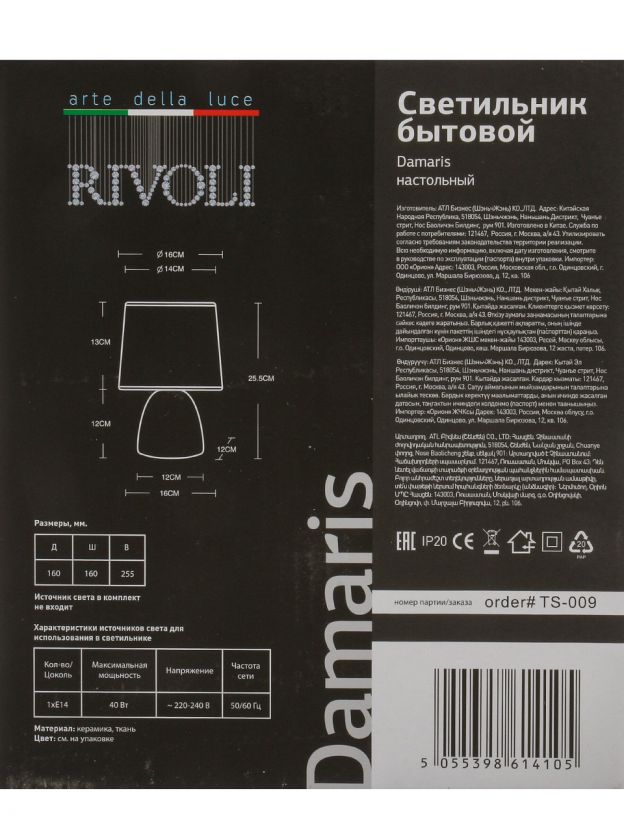 Выбирайте Rivoli Damaris — купить недорого настольную лампу для дачи или квартиры можно с официальной гарантией 12 месяцев и быстрой доставкой. Сделайте заказ прямо сейчас — добавьте уюта и стиля вашему пространству.