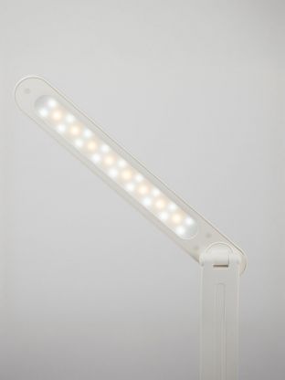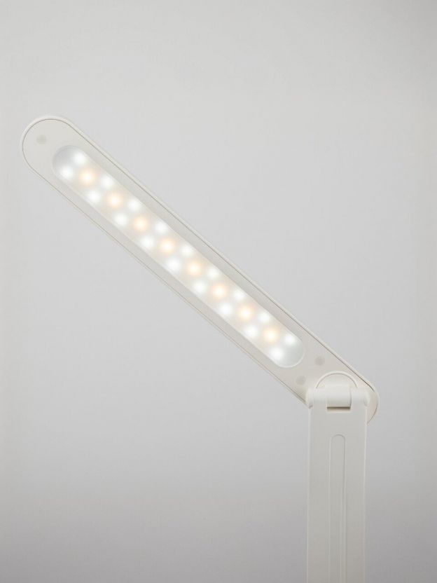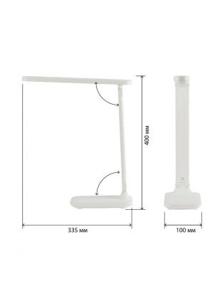 Настольный светильник ЭРА NLED-495-5W-W со светодиодами (LED) в качестве источников света в дизайне "под кожу". Встроенный литиевый аккумулятор для автономной работы. Подзарядка от USB. USB-кабель в комплекте. Оснащен сенсорным управлением с возможностью выбора цветовой температуры (теплый, нейтральный или холодный свет). Плавный диммер для регулировки яркости. Выключатель для отключения/блокировки сенсора. Направление света регулируется наклоном стойки и поворотом панели со светодиодами относительно стойки для максимального комфорта. Складная конструкция для оптимального хранения.