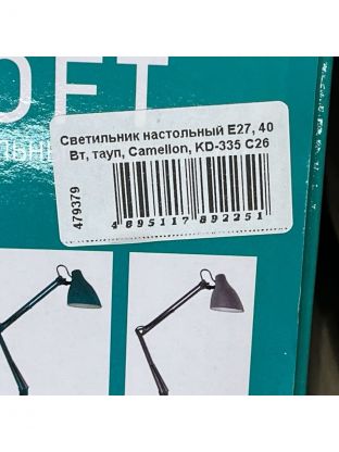 Светильник настольный Е27, 40 Вт, тауп, Camelion, KD-335 С26