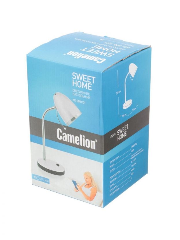 Светильник настольный на подставке, E27, 40 Вт, хром, абажур белый, Camelion, KD-308 C01, 11476