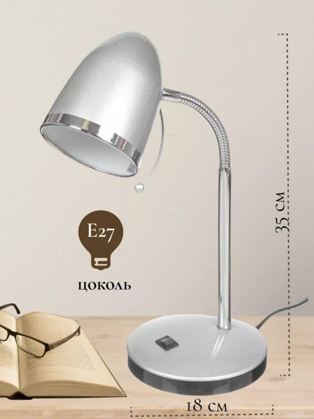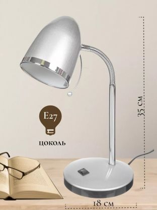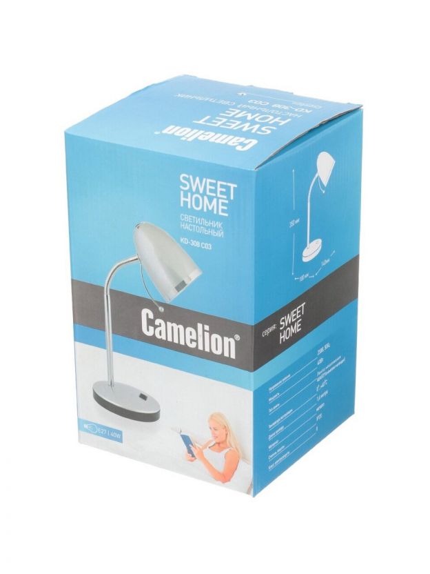 Светильник настольный на подставке, E27, 40 Вт, хром, абажур серебристый, Camelion, KD-308 C03, 11478