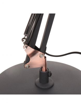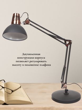 Настольная лампа предназначена для освещения рабочего стола. Корпус выполнен из прочного материала. Нейтральная расцветка корпуса позволит изделию дополнить любой дизайн интерьера, будь то жилая комната или офисный кабинет. Складная конструкция и поворотный плафон позволяют регулировать направление света.