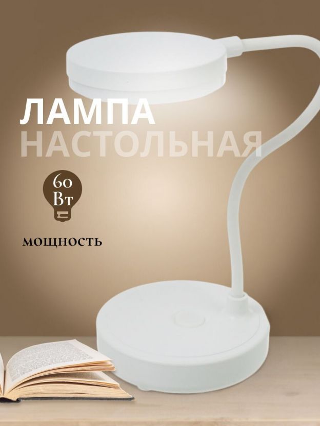 Светильник настольный на подставке, с USB, белый, абажур белый, YT-L28