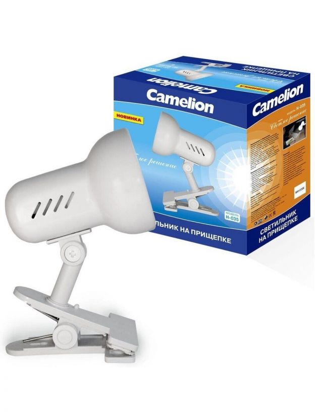 Светильник настольный на прищепке, E27, 40 Вт, белый, абажур белый, Camelion, H-035 C01