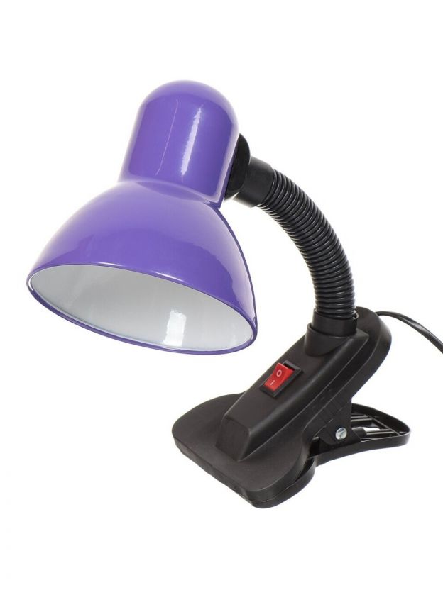 Светильник настольный на прищепке, E27, черный, абажур фиолетовый, SPE17156-07/333930