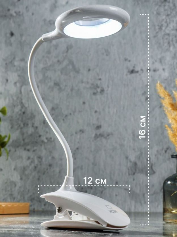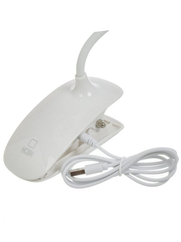 Светильник настольный на прищепке, с USB, белый, абажур белый, YT-DT-083
