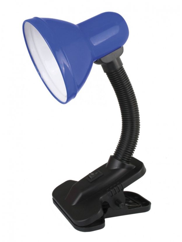 Настольный светильник с прищепкой Ultraflesh UF-320Р C06: эргономика, стиль и экономия — оптимальное решение для учебы, работы и творчества. Мощность 60 Вт, гибкая конструкция, синий абажур.