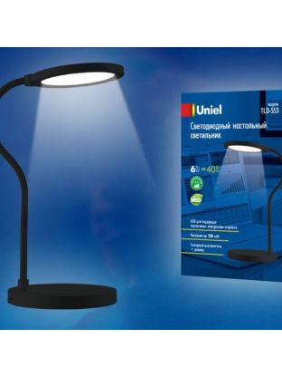 Светильник настольный сенсорное включение, 6 Вт, черный, абажур черный, Uniel, TLD-553 Black, UL-00003339