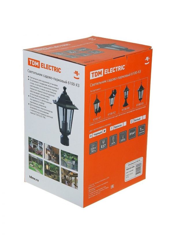 Светильник садово-парковый TDM Electric, 6100-03, на опору, 100 Вт, металл, шестигранник, черный