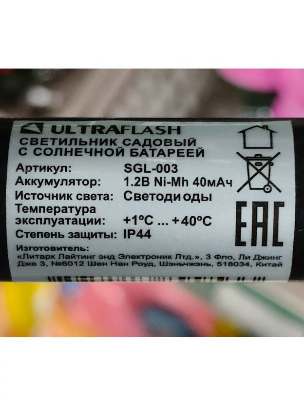 Светильник садовый Ultraflash, SGL-003, на солнечной батарее, грунтовый, шар, матовый