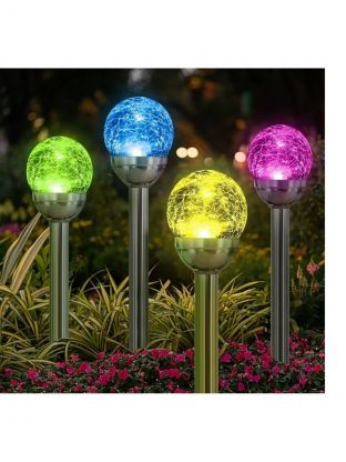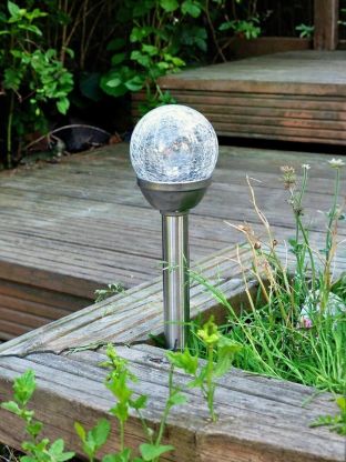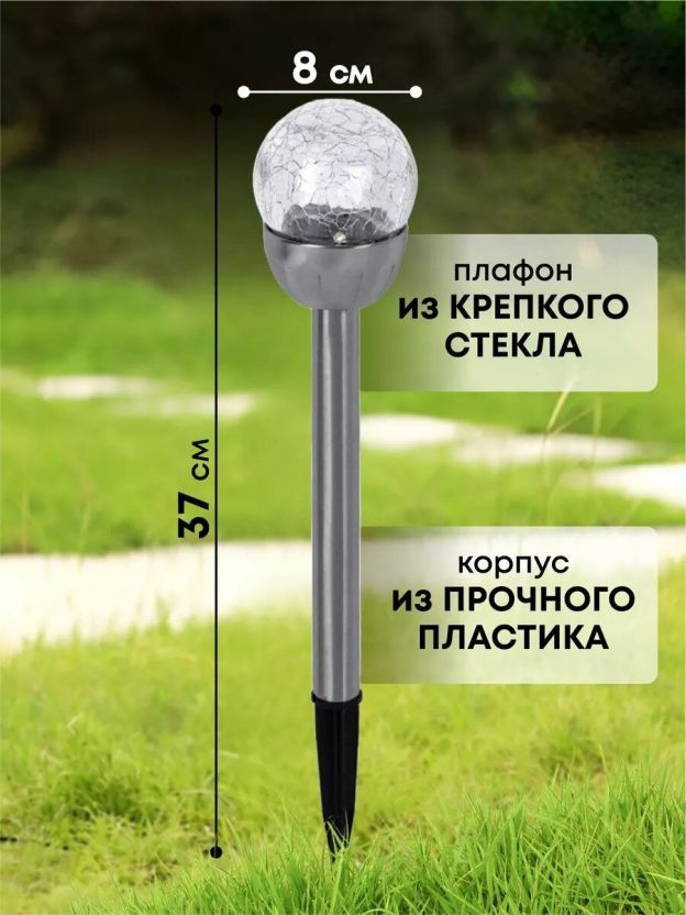 Светильник садовый Ultraflash, SGL-005, на солнечной батарее, грунтовый, шар, с эффектом битого стекла, прозрачный