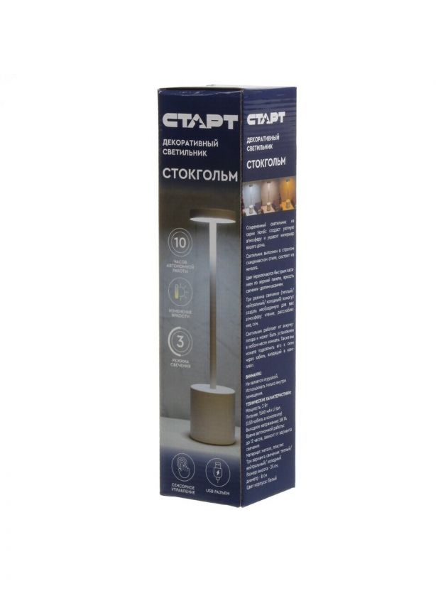 Светильник "Стокгольм" Nordic предлагает не только стильный дизайн, но и функциональность, которая удовлетворит даже самых требовательных пользователей. С мощностью 3 Вт, он обеспечивает регулируемый световой поток, который позволяет создать идеальную атмосферу для работы или отдыха. Питание от аккумулятора делает его мобильным и удобным в использовании, не ограничивая вас в выборе места для установки.